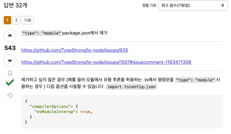 1. TypeScript 컴파일러 설정: TypeScript 컴파일러는 기본적으로 CommonJS 모듈 형식을 사용하도록 설정되어 있습니다. package.json에 "type": "module"을 설정하면 ES 모듈 형식을 사용하도록 변경되지만, TypeScript 컴파일러 자체는 이를 인식하지 못합니다.